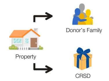 Flowchart: Donor leaves property through will or trust to family and CRSD